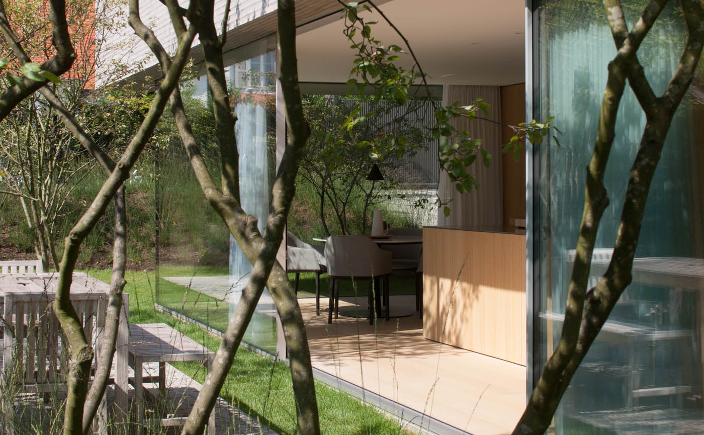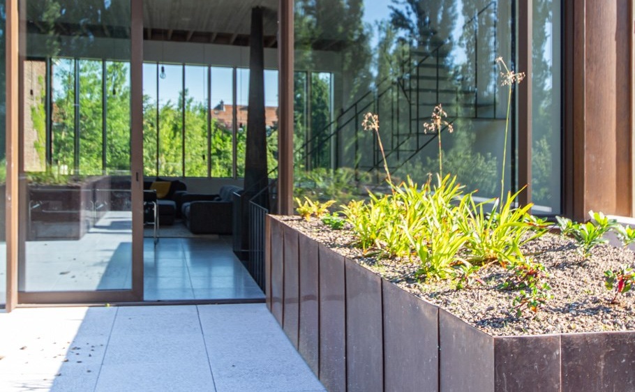 Een inspirerende stadstuin in Brussel waarbij de buitenaanleg een stukje natuur binnenshuis brengt.